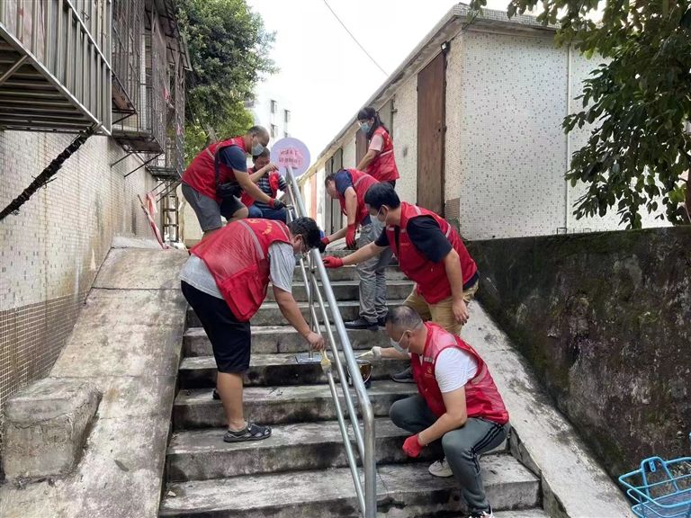 橋頭社區(qū)在職黨員認(rèn)領(lǐng)服務(wù),為轄區(qū)一處公共樓梯加裝扶手。/社區(qū)供圖