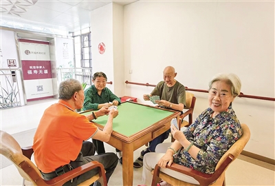 在天福養(yǎng)老社區(qū),院方安排棋牌等活動(dòng)豐富老人業(yè)余生活。