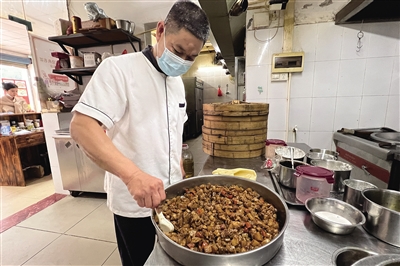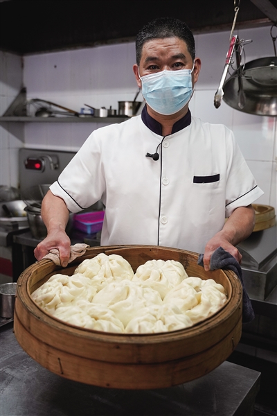 傳承方面,陳瑞銘同樣在物色中意的傳人。此前,也時(shí)常有學(xué)校組織學(xué)生到陳瑞銘店里,請(qǐng)他傳授樂(lè)平大包的制作技藝,當(dāng)時(shí)因?yàn)樵趫?chǎng)的師生太多,陳瑞銘只好在餐廳大堂公開(kāi)演示。然而,覓得有心人并不容易。半年前,一名30來(lái)歲的男子曾向陳瑞銘表達(dá)了學(xué)習(xí)樂(lè)平大包制作技藝的意愿,兩人有一個(gè)一起開(kāi)店的口頭承諾。不巧的是,由于疫情等原因,那名男子遲遲未能如約。