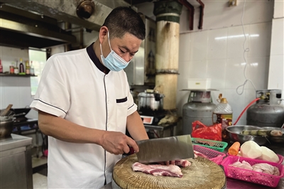 那時(shí)候餐廳的規(guī)模很大,從切料、搓粉到包制各個(gè)環(huán)節(jié) ,都有專人負(fù)責(zé),而如今,陳瑞銘?yīng)氉灾谱饕换\樂(lè)平大包,整個(gè)過(guò)程至少得4個(gè)小時(shí),這讓陳瑞銘頗感吃力,昔日那個(gè)精力旺盛的小伙子,如今已經(jīng)年過(guò)五十,一頭短發(fā)已然沾染霜白。