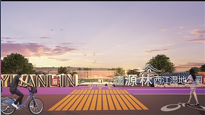 九江源林西江濕地公園將于明年元旦前建成。圖為入口效果圖。 /佛山日?qǐng)?bào)記者劉浩斌攝