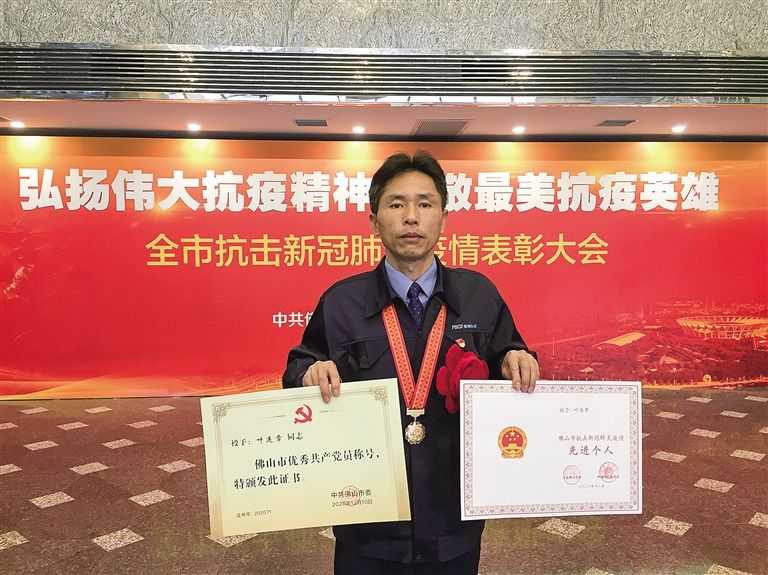 因抗疫工作突出,2020年以來,葉連章先后獲評省、市優(yōu)秀共產(chǎn)黨員,獲得佛山市抗擊新冠肺炎疫情先進(jìn)個人稱號,還被中國道路運(yùn)輸協(xié)會授予“抗擊新冠肺炎疫情優(yōu)秀個人”稱號。