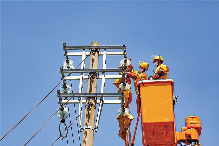 南方電網(wǎng)廣東佛山順德供電局工作人員頂著烈日開展帶電接火作業(yè),提高供電可靠性。/通訊員辛埗供圖