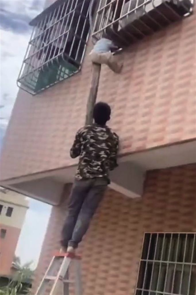 “我是在附近工地工作的,平時(shí)習(xí)慣了爬上爬下?!庇嗌硎荆?dāng)時(shí)何偉雄從家中搬來梯子和木棍,他連忙爬上梯子,用木棍在下面頂住幼童,以防他掉落。另一邊,何偉雄、侯強(qiáng)、陸成忠、陸應(yīng)華,從旁協(xié)助,從窗臺內(nèi)將幼童抱回房間。孩子得救了。