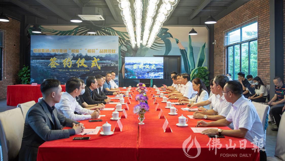 5日上午,國際知名奢華品牌酒店悅榕集團(tuán)度假品牌授權(quán)簽約儀式在陌上花開礦井花園項(xiàng)目部舉行。/佛山日報記者洪海攝