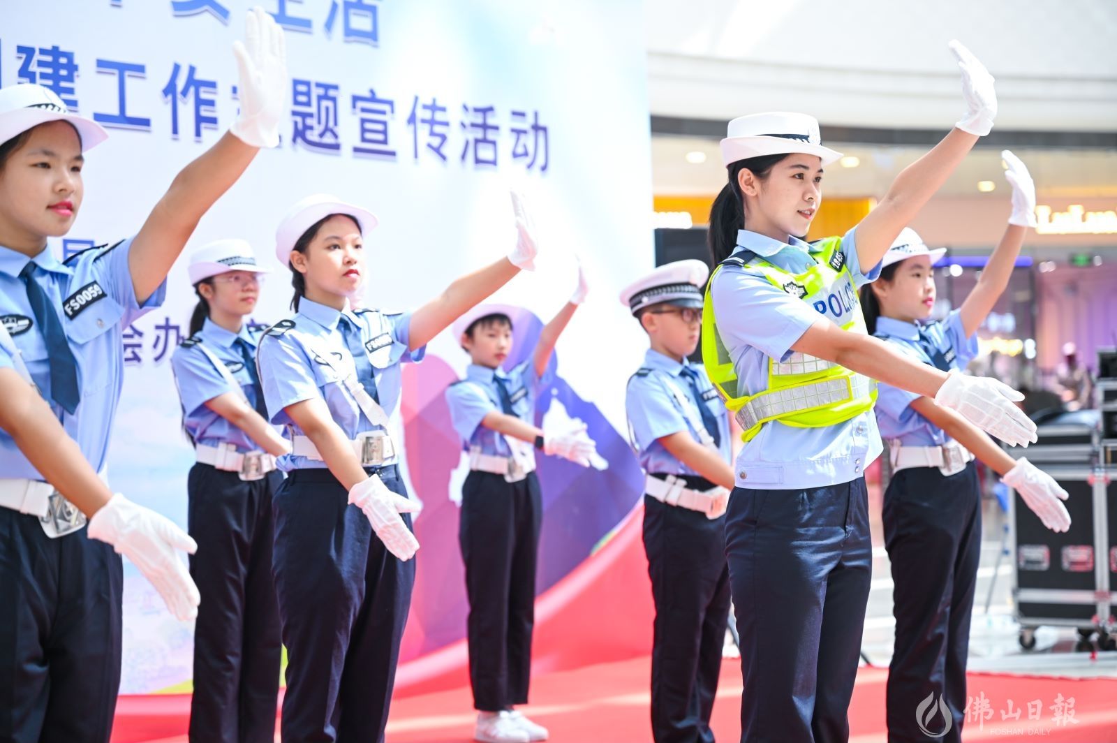 現(xiàn)場(chǎng),記者留意到了一支特殊的隊(duì)伍。這支隊(duì)伍由十余名青少年組成,他們身著“小警服”,帶來了交通手勢(shì)操表演,并被授予少年交警隊(duì)旗幟。10歲的黃梓峻是其中一員?!俺霭l(fā)!”一聲令下,他跟隨父親——南海分局交警大隊(duì)鐵騎隊(duì)民警黃猛來到萬達(dá)廣場(chǎng)附近的交通路口,參與文明交通勸導(dǎo)。