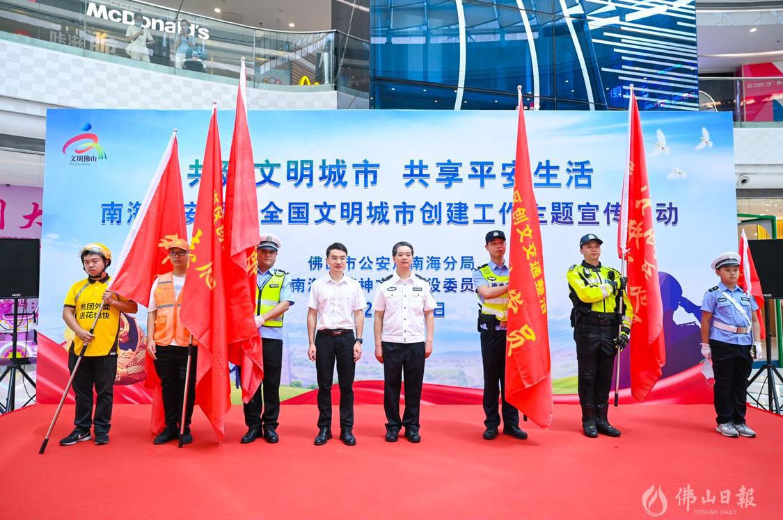 佛山日?qǐng)?bào)訊 記者王旖荻 通訊員陳思穎報(bào)道:8月8日,南海公安分局舉行“共建文明城市 共享平安生活”深化全國文明城市創(chuàng)建工作主題宣傳活動(dòng),現(xiàn)場(chǎng)為交通整治志愿服務(wù)隊(duì)伍授旗,并發(fā)放小貼紙傳遞文明交通安全理念。