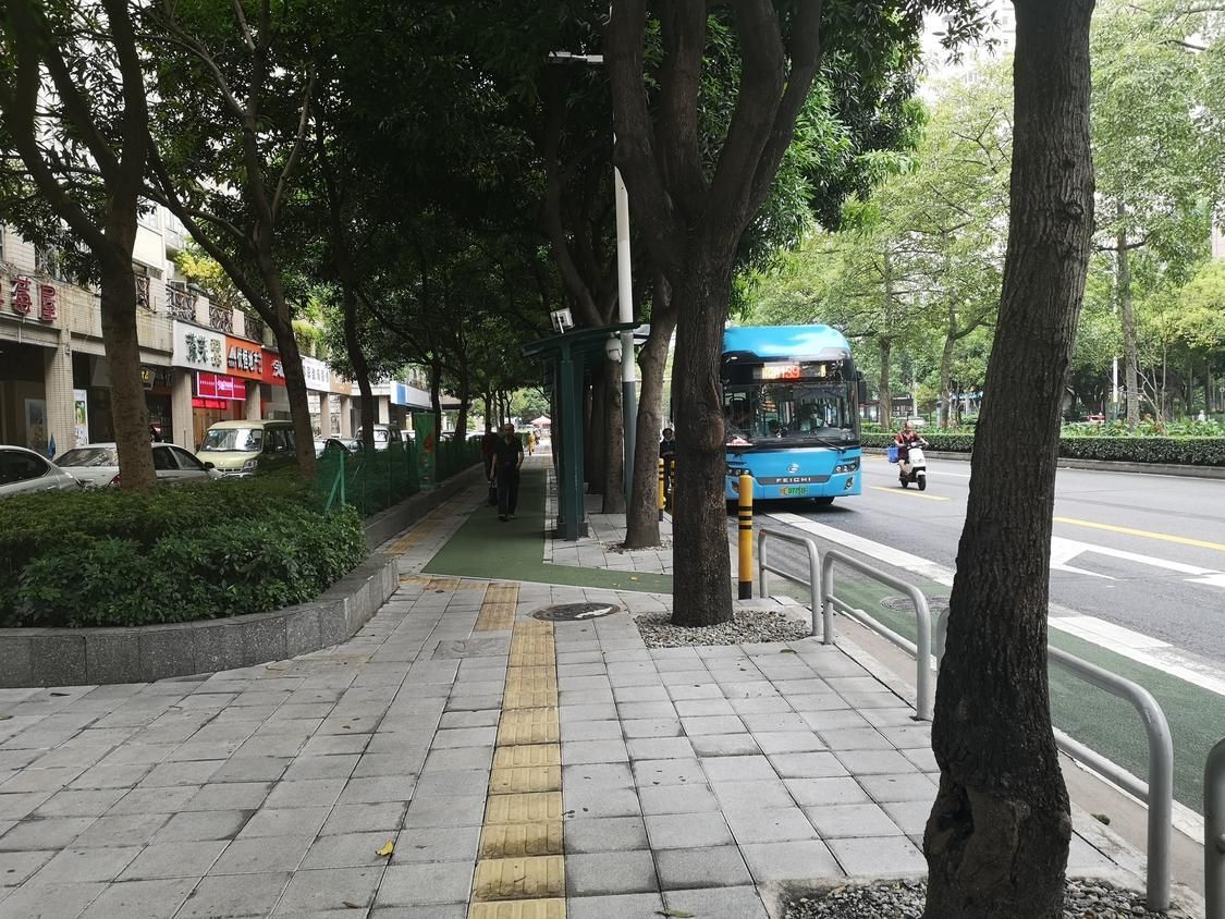 據(jù)了解,非機(jī)動(dòng)車道在汾江路至嶺南大道段非機(jī)動(dòng)車道需繞行公交站后側(cè)時(shí),部分站點(diǎn)繞行位置緊貼公交站,容易造成沖突和危險(xiǎn)。記者在現(xiàn)場(chǎng)看到,經(jīng)過調(diào)整后,綠景一路公交站區(qū)域的非機(jī)動(dòng)車道將繞行位置與公交站的距離拉大,避免非機(jī)動(dòng)車和公交車搶道,提高通行安全性。