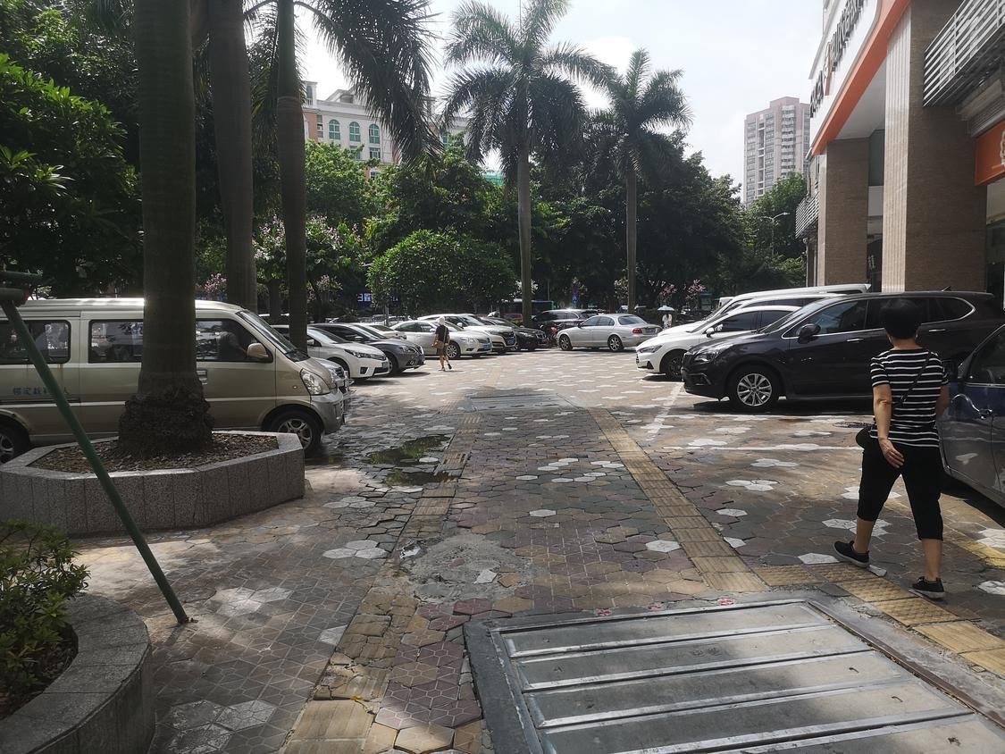 綠景路與汾江路交叉口西南側(cè)屬于季華花園五期小區(qū)用地,長(zhǎng)度約100米。此前,這里主要作為小區(qū)私家車停車場(chǎng)使用,兼具行人通行功能。但鋪設(shè)的人行道磚在車輛長(zhǎng)期碾壓過程中不堪重負(fù),出現(xiàn)了大面積破損,嚴(yán)重影響附近居民出行。另外,該區(qū)域位于路口右轉(zhuǎn)專用道旁,且沒有劃設(shè)自行車道,加大了過往非機(jī)動(dòng)車的安全風(fēng)險(xiǎn)。