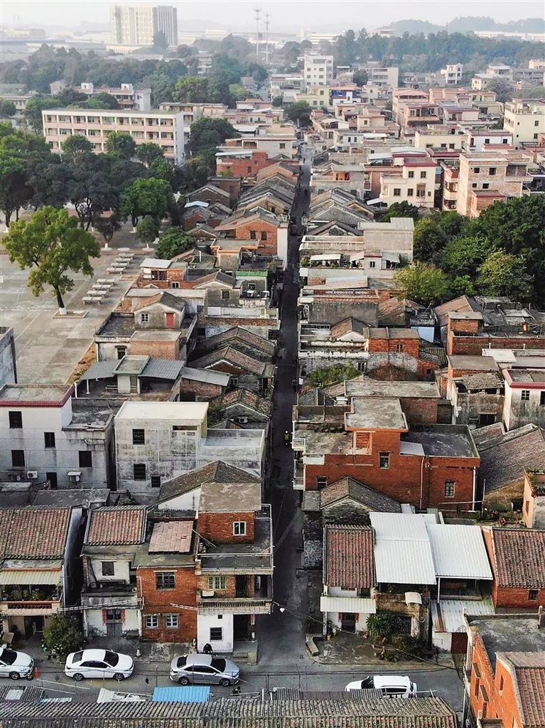 從高空俯瞰察院街,筆直的街道一直延伸到街口的仁壽坊牌坊。/佛山日?qǐng)?bào)記者洪海攝