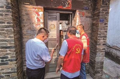24日,順德北滘社區(qū)工作人員逐門逐戶檢查,勸導(dǎo)和轉(zhuǎn)移危房住戶。/部門供圖