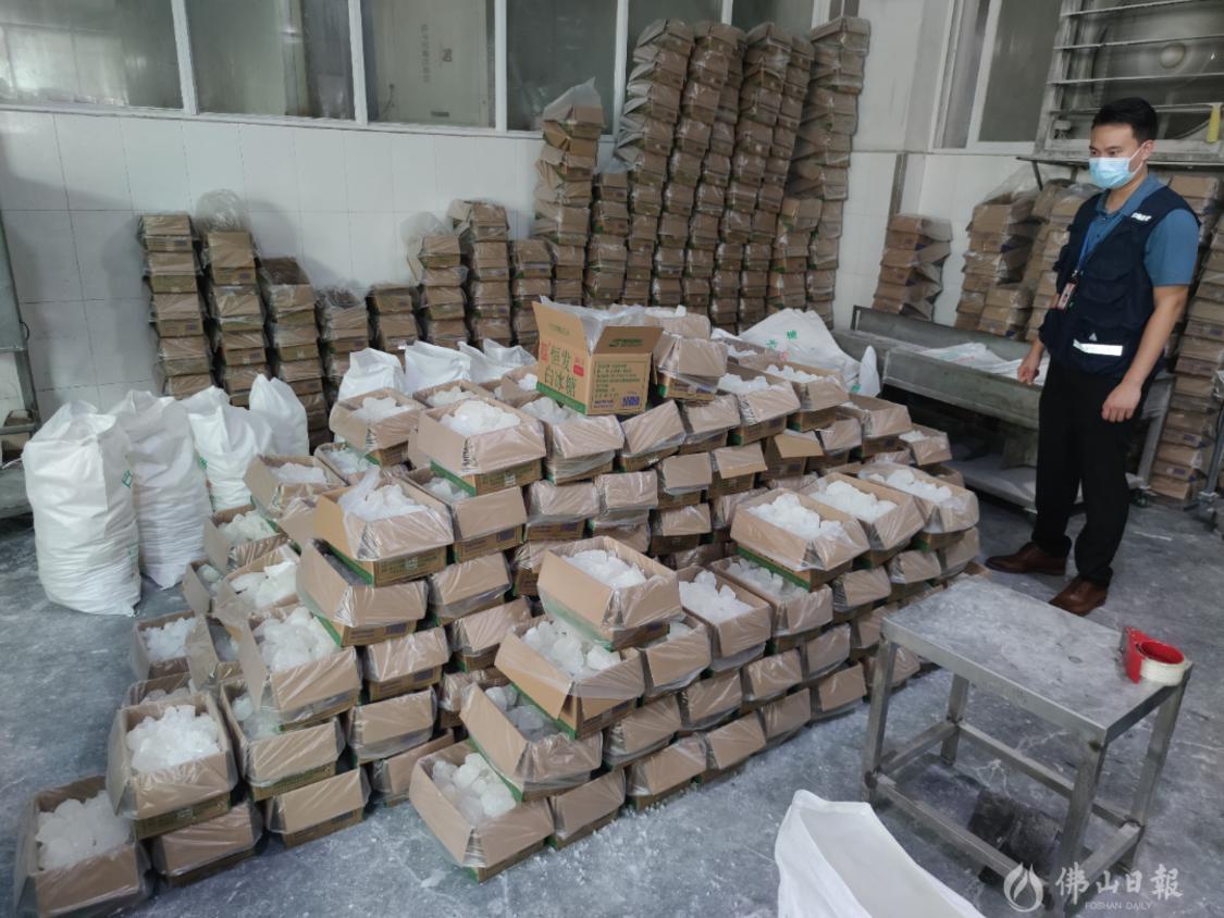 南海區(qū)西樵市場監(jiān)督管理所查獲一批標注虛假生產(chǎn)日期的白冰糖。/通訊員供圖