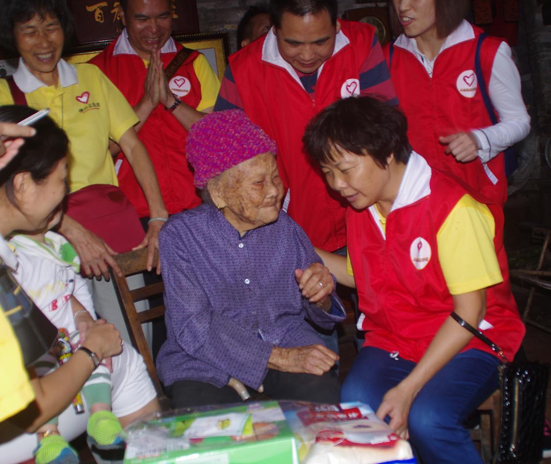 莫才好(前排右一)參與志愿服務(wù)活動(dòng),為孤寡老人送溫暖。/三水區(qū)文明辦供圖
