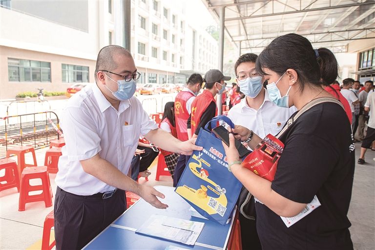 “請(qǐng)您出示健康碼,進(jìn)行掃碼測溫?!鄙泶┘t馬甲的志愿者耐心說道。8月31日上午,來自佛山各地的教練、學(xué)員以及高明本地居民等近400名參與者,齊聚高明小型汽車駕駛?cè)巳颇靠紙觥8呙鲄^(qū)國資系統(tǒng)聯(lián)合高明順銀村鎮(zhèn)銀行在此開展2022年第二期“組團(tuán)服務(wù)”系列活動(dòng),進(jìn)行集中宣講并派發(fā)各種精美紀(jì)念品。