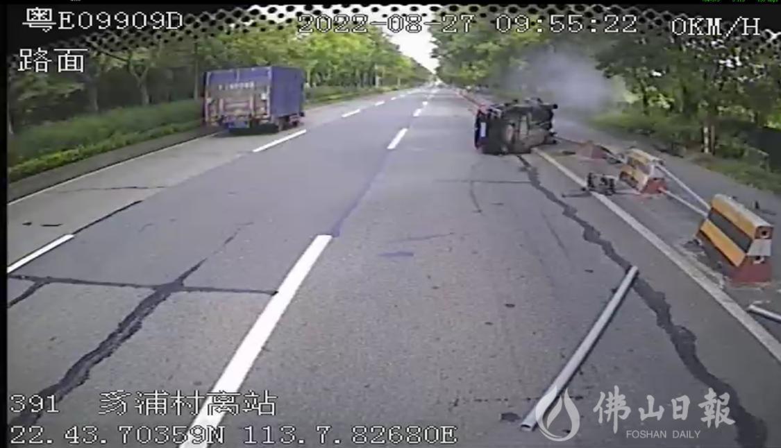 當(dāng)天上午9點(diǎn)55分,順汽公交駕駛員潘榮錦正駕駛391路公交車行駛至均安上村百安路段時(shí),左后方駛出的一輛小轎車筆直撞上前方右側(cè)隔離欄后側(cè)翻在路上。潘榮錦立即緊急剎車并安全停穩(wěn)車輛。隨后,他趕緊拿上滅火器,并與車上幾位熱心乘客同時(shí)沖向前方事故現(xiàn)場。“當(dāng)時(shí)事發(fā)突然,情況非常緊急,我腦子里只想著救人!”潘榮錦說。