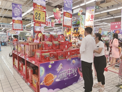 在大潤發(fā)桂城店,市民在挑選月餅。/佛山日報記者陳意威攝