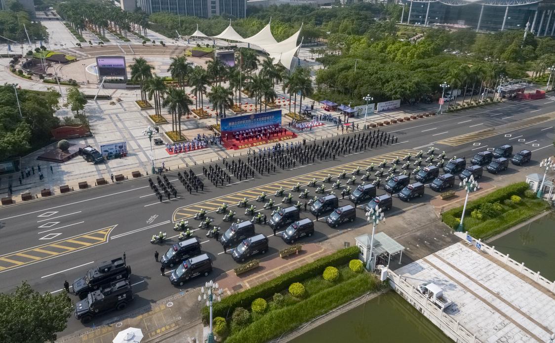 “對黨忠誠,服務(wù)人民,執(zhí)法公正,紀(jì)律嚴(yán)明,使命在肩,勇挑重?fù)?dān),決戰(zhàn)決勝,誓保平安!”在順德區(qū)副區(qū)長、區(qū)公安局黨委書記、局長石耀昌的帶領(lǐng)下,警輔們高舉右拳,莊嚴(yán)宣誓,發(fā)出了護(hù)航“黨的二十大”安保維穩(wěn)決戰(zhàn)決勝的集結(jié)令、沖鋒號。隨著“全警出發(fā)”一聲令下,全體參戰(zhàn)民輔警即刻出動深入轄區(qū)各重點(diǎn)區(qū)域、交通干道開展武裝巡邏。