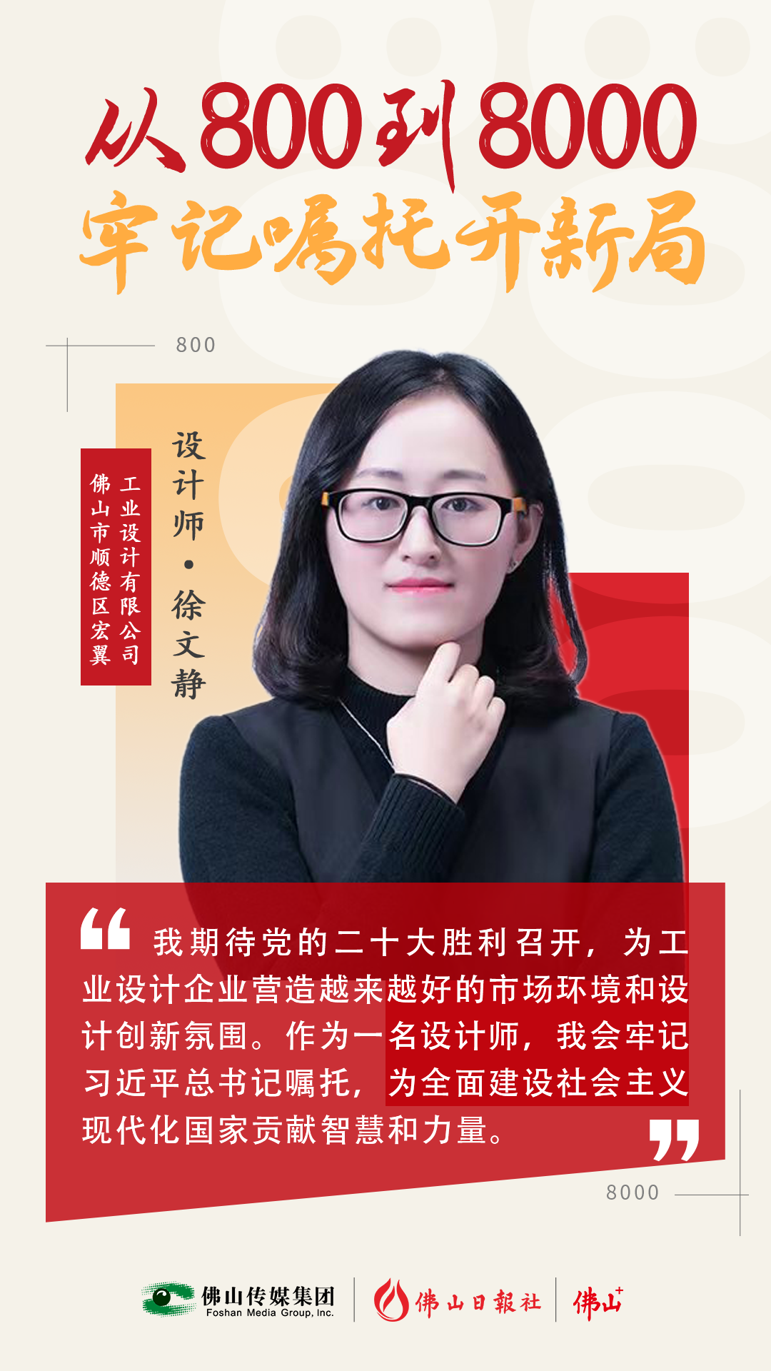 今年32歲的徐文靜,是佛山市順德區(qū)宏翼工業(yè)設(shè)計(jì)有限公司設(shè)計(jì)總經(jīng)理,如今已經(jīng)在佛山結(jié)婚落地安居,成為一名地道的“順德通”。她的成長,離不開廣東工業(yè)設(shè)計(jì)城這片創(chuàng)新創(chuàng)業(yè)的熱土?!傲?xí)近平總書記對廣東工業(yè)設(shè)計(jì)城的殷殷囑托,是我們不斷進(jìn)步的動(dòng)力,這些年來大家都不敢懈怠。”作為一名共產(chǎn)黨員,徐文靜始終牢記初心踐行使命,積極投身高質(zhì)量發(fā)展的時(shí)代潮流,為提升工業(yè)設(shè)計(jì)水平、增強(qiáng)中國制造競爭力貢獻(xiàn)創(chuàng)新力量。
