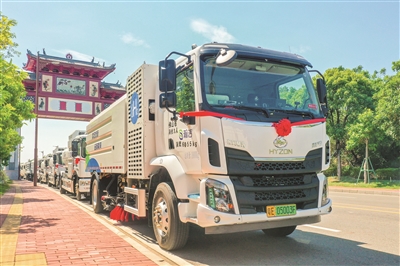 瀚藍(lán)環(huán)境股份有限公司(以下簡(jiǎn)稱“瀚藍(lán)”)率先在區(qū)內(nèi)推廣使用氫能環(huán)衛(wèi)車。目前瀚藍(lán)共有氫能環(huán)衛(wèi)車54輛,包括后裝壓縮車、高壓清洗車、灑水車、洗掃車、掃路車,應(yīng)用于地面清掃、垃圾收運(yùn)、城市管道清理等多個(gè)作業(yè)領(lǐng)域。