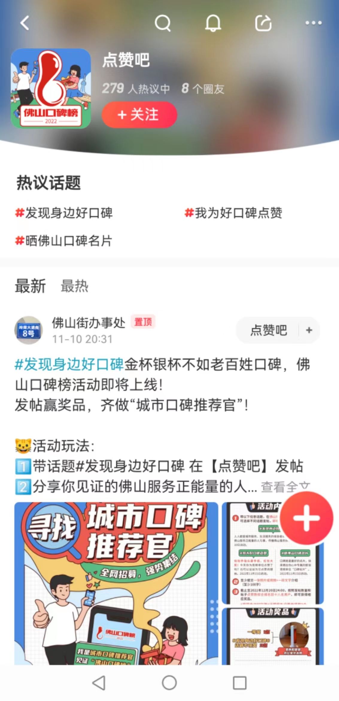 主辦方在“佛山+”APP上線網(wǎng)絡(luò)口碑社區(qū)“點(diǎn)贊吧”,作為佛山口碑榜活動(dòng)的網(wǎng)上陣地。
