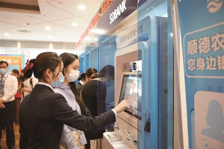 此外,在順德農(nóng)商銀行大良支行網(wǎng)點(diǎn),市民觀察團(tuán)感受到了社銀合作專區(qū)服務(wù)的創(chuàng)新和便民的誠(chéng)意。75歲的岑伯來(lái)銀行社保專窗辦理養(yǎng)老資格認(rèn)證,不到5分鐘就辦好了,他高興得連連稱贊“方便”。銀行內(nèi)還放置有“社銀”自助終端機(jī),上線54項(xiàng)高頻社保業(yè)務(wù)辦理功能。這樣的自助終端已在全市社區(qū)(村居)黨群中心、社區(qū)服務(wù)中心、工業(yè)園區(qū)、銀行網(wǎng)點(diǎn)等投放510臺(tái),逐步建立起“10分鐘社保服務(wù)圈”。