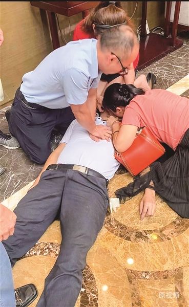 市民接力為暈倒男子進(jìn)行心肺復(fù)蘇。