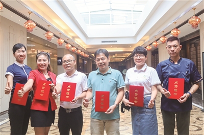 三水區(qū)文明辦為參與救援的5名市民以及佛山市三水區(qū)新動力餐飲有限公司頒發(fā)點贊證書。